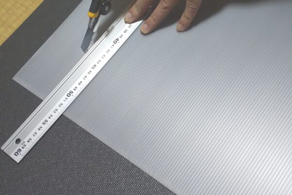 とはいえプラダンは、カッターで切れる素材。ダンボールやカッターマットを敷けば、床を傷つけずに作業できます。